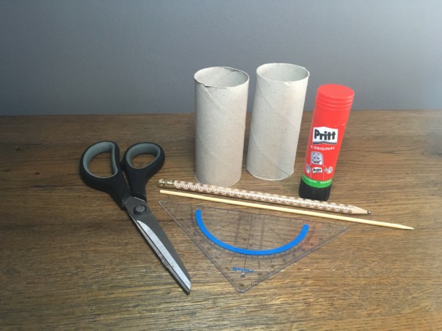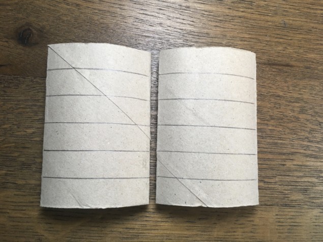 2. Zeichne mit dem Geodreieck jeweils 6 gleich große Spalten auf die Klorollen. (Eine Spalte jeweils ca. 1,5 cm breit)
