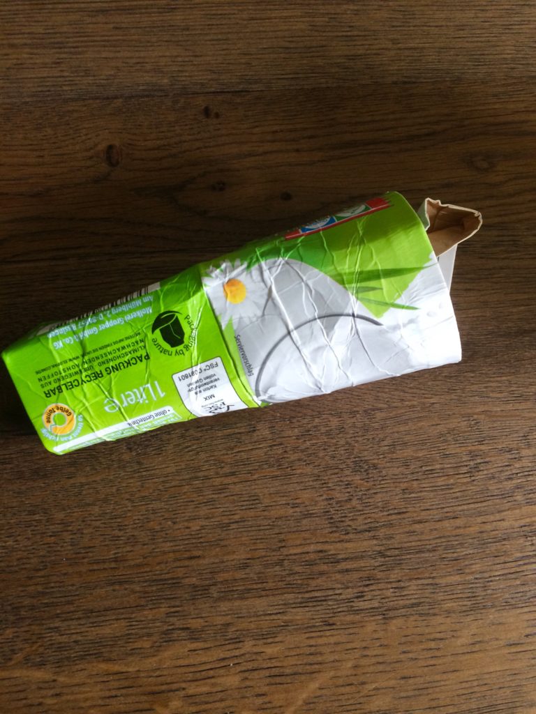 Wenn das nicht so einfach geht, musst du die Milchpackung noch einmal knittern.