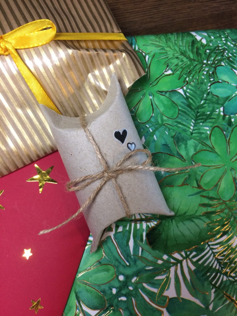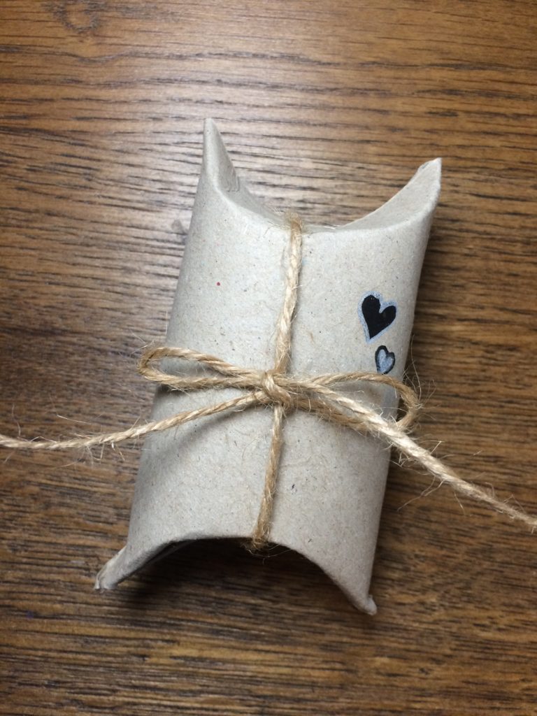 Probiere stattdessen lieber diese Geschenkpackung aus, die man in 5min gebastelt hat und die aus einer alten Klorolle besteht, die sowieso im Müll gelandet wäre.