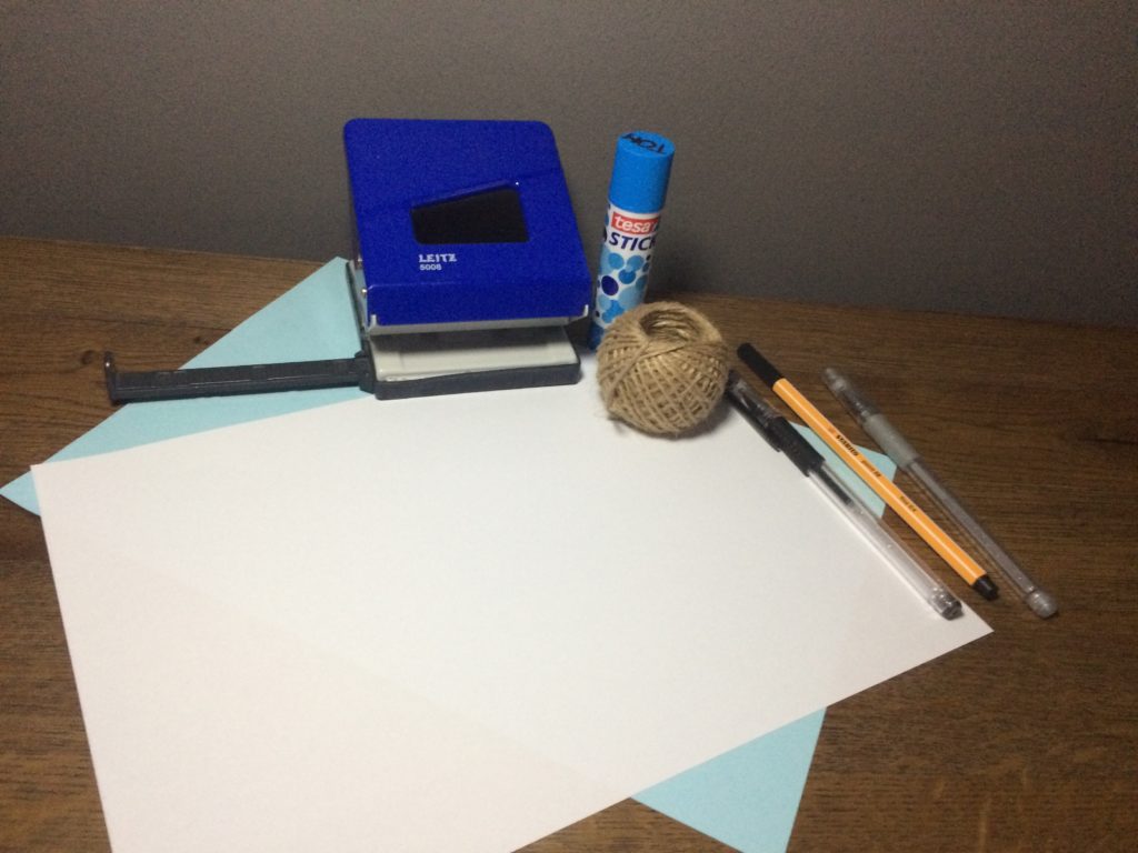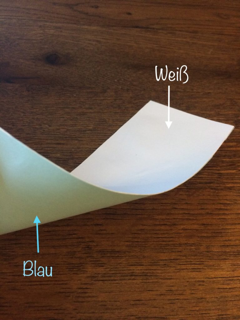 - Ein farbiges (z.B. ein blaues) und eine weißes Papier